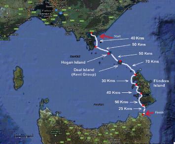 14/3/12 6am Signal recieved – Mal has left Deal Island for 70km+ crossing to Flinders Island