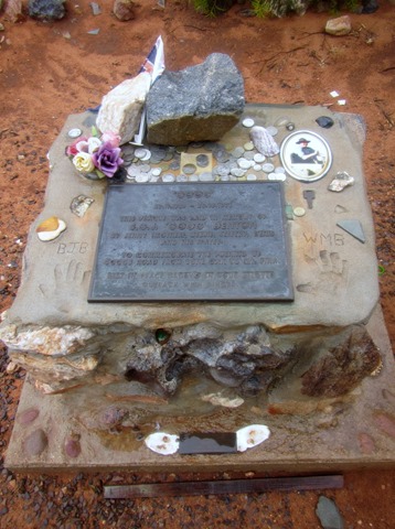 Googs Track across the dunes was completed in 1976 and you can see the history of the track here. The memorial to track builders Goog and Dinger was an unusual place with tributes left around the plaque.
