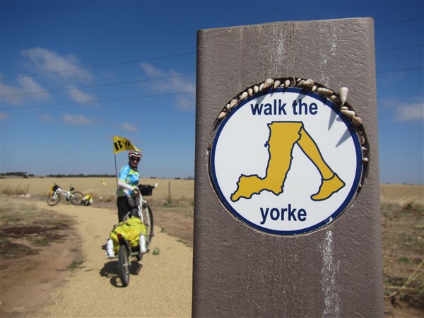 The Walk the Yorke 500km walking and cycling trail has just been opened from the town of Port Wakefield to Moonta Bay. It follows the coast in most places with lots of beaches to traverse by walkers. For bikes it follows the coast as near as possible. So off we set on our Focus MTB’s and BOB trailers, with the intention of riding in the morning and exploring in the afternoons. We spend 11 days riding the “Walk the Yorke” which has some great scenery and variable trail conditions.