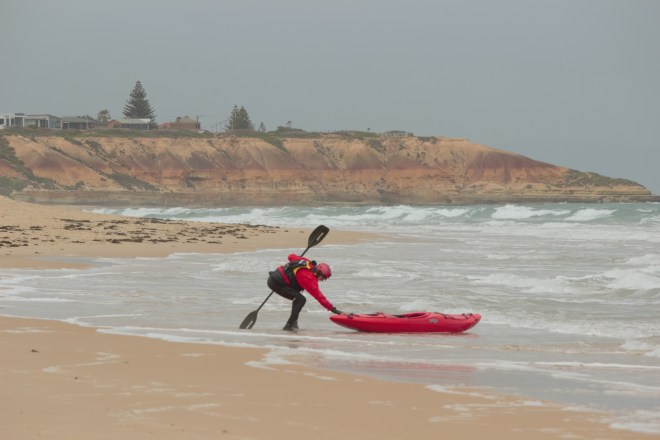 Think I was out the same day last weekend from Aldinga in the ole’ Tassie Greenlander. paddling half a k out toward Sellicks and return for a short jaunt. . Was going to paddle around a few points from Maslins to Dingie. Rain squall coming in, seas pretty big, going Solo. . . .decided now was not a time to be going off shore far out from those rocky points. . . pulled the pin. got bored and came up with a better plan. .Not like you though, it had dropped to 25 knts by the time I went out !.. . . gees you’ve got a dedicated photographer ! ! love what yous come up with fellas. Tresh