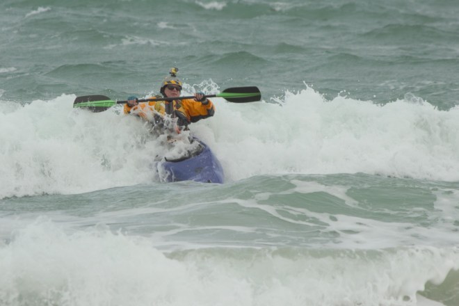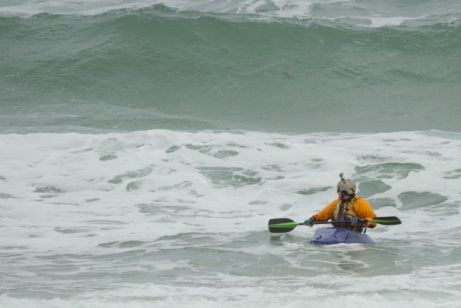 I just look at the waves behind you in the pics and know they are twice as big in person on a kayak. All of you are insane but it looks like you are having a great time. Happy paddling!!!