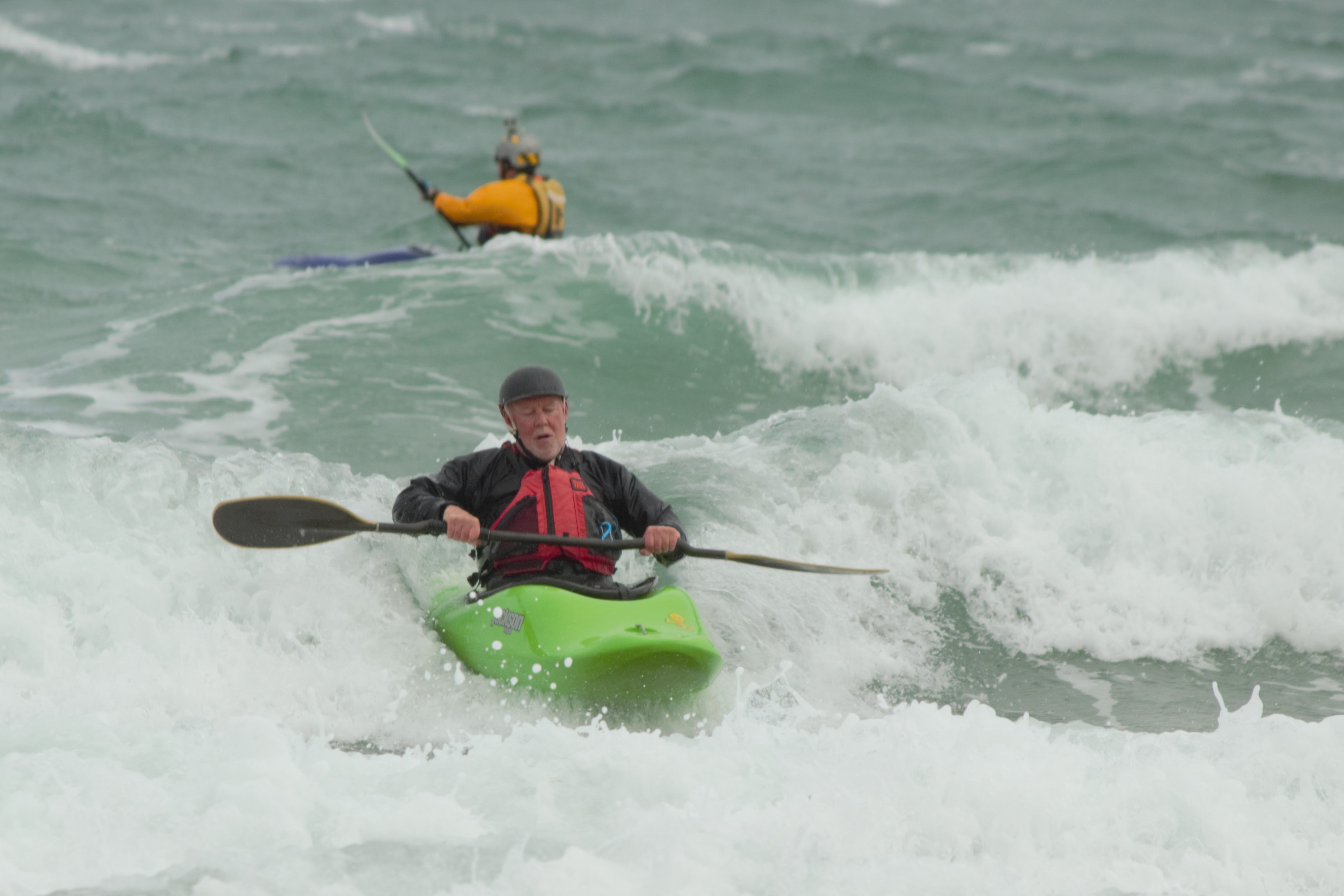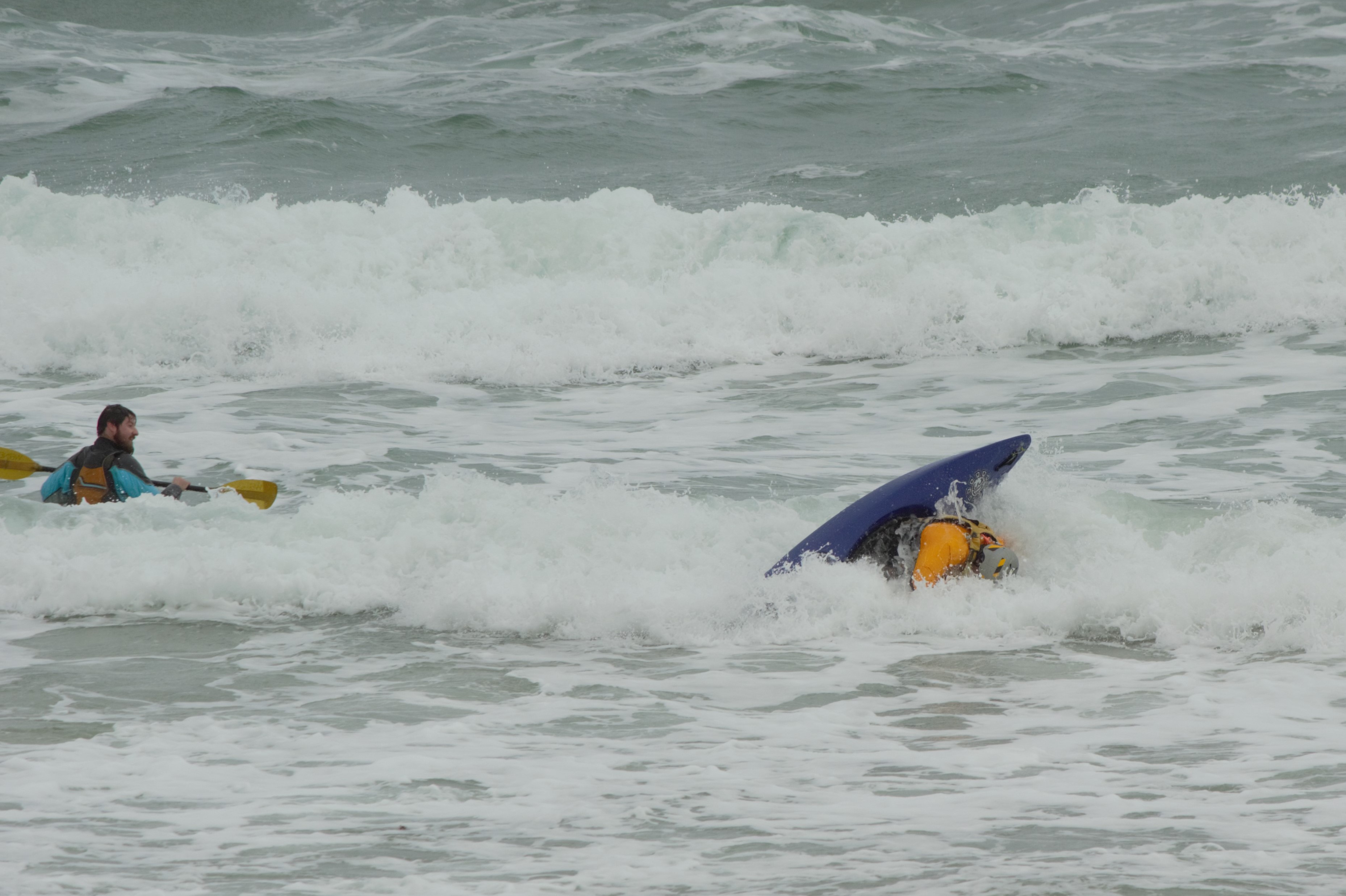 I just look at the waves behind you in the pics and know they are twice as big in person on a kayak. All of you are insane but it looks like you are having a great time. Happy paddling!!!