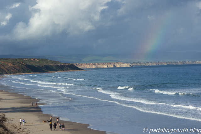 We climbed the 56 stairs to the car as some warmth returned and reflected on another day in COVID lockdown. Here we are doing great with no infections for 12 days, but other states are not so good. You notice that people on the beach keep their distance, not only because of COVID, but straying close to a couple of loony paddlers is to be avoided.