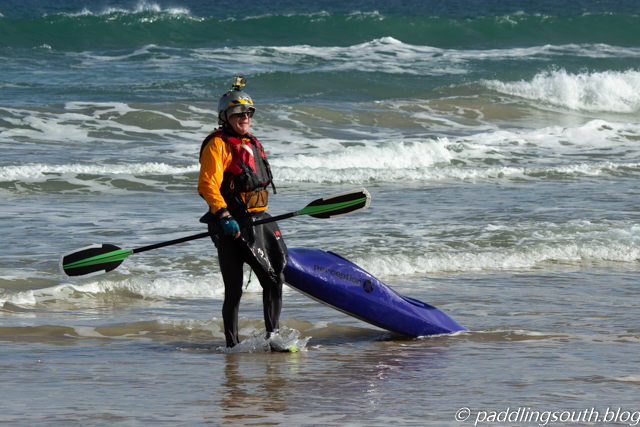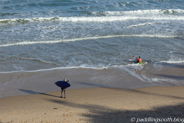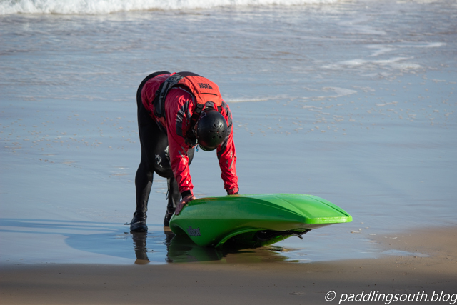 The trick is to paddle as far as possible then jump out. Quickly drag your kayak whilst fighting the undertow that wants to knock you over and roll you around in 20cm of water and swirling sand.