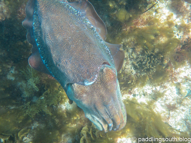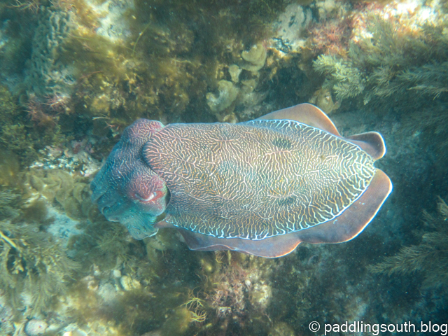After our kayak sessions we greeted the Giant Cuttlefish in their own environment, which is freezing cold in June. Donning every piece of wetsuit we owned gave us an hour of intrigue watching the mating ritual of the Cuttlefish. Seems a pity that the male mates and then dies π
