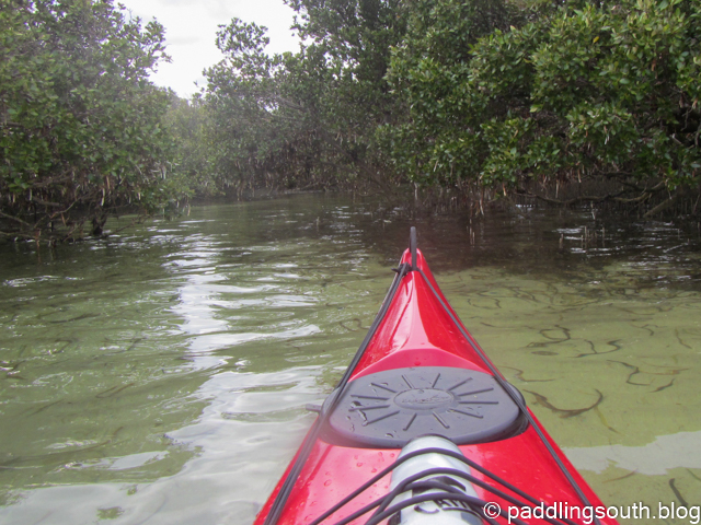 The water was clear giving a fish eye view as we powered along over the sea bed of sand, sea grass and shells. Paddling on the edge of the mangrove forest the water was clear but changeable in depth. One minute you felt like the bottom was rising up to meet you and next it was dropping away into the green depths.
