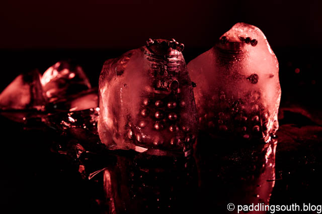 When we are home there are experiments with “still life”. Is this the beginning of Armageddon where the Daleks conquer Earth or Robyn playing silly buggers with my salt and pepper shakers encased in ice ?