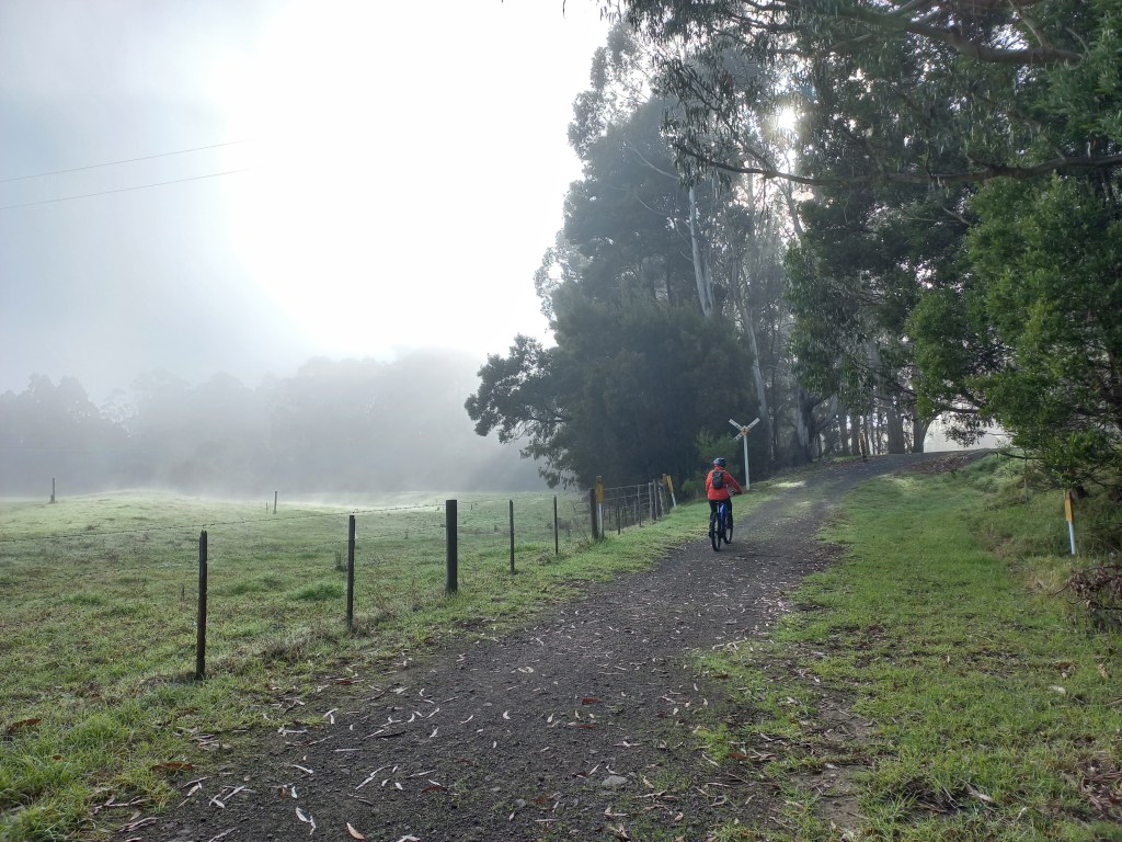 It was mid-morning and the fog had lifted enough to see the track more than a few metres ahead. Janis was banging around in my head, at least until I nearly rode off the leaf covered track and into a tree. That smartened things up a bit.