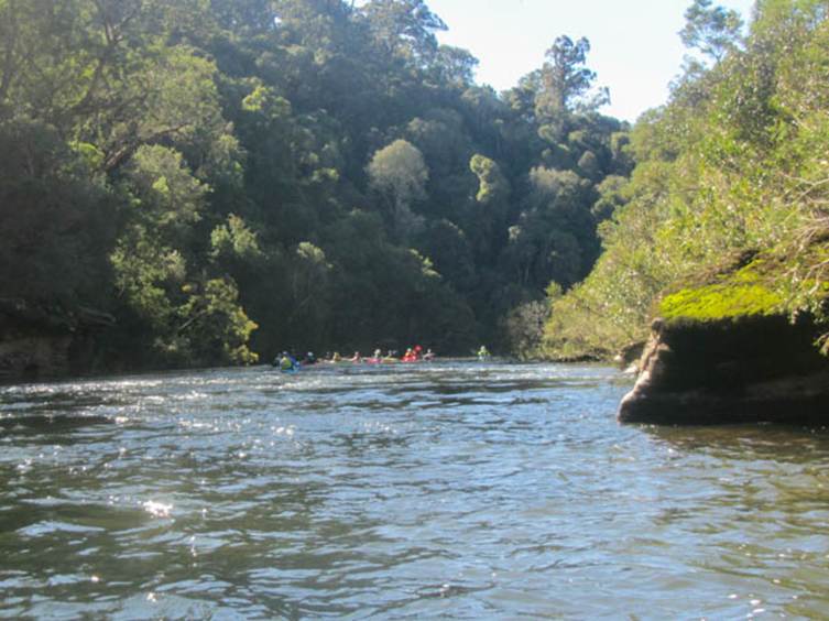 Saturday I joined a group of club paddlers, organised by Dita Pahl of Canoes Plus Racing Team, (yes I’m a rather slow member) for a 9km paddle down the Mitchell River, from the Den of Nargun rapid to the Final Fling rapid. The first task is carrying your kayak down the 700 metre path into the gorge then across the Iguana creek. I admit dragging my kayak the last bit of the descent.
