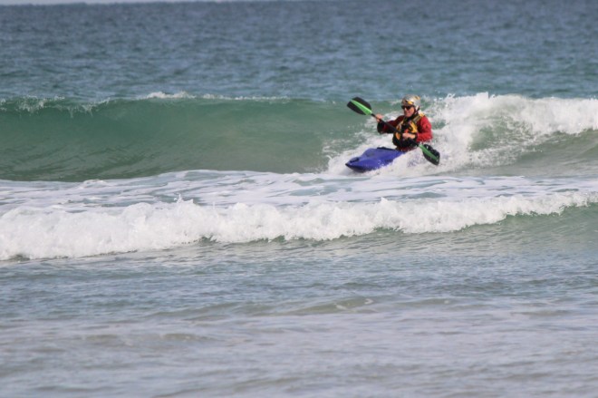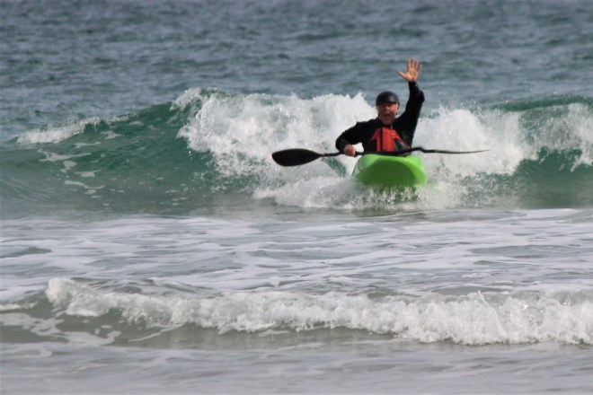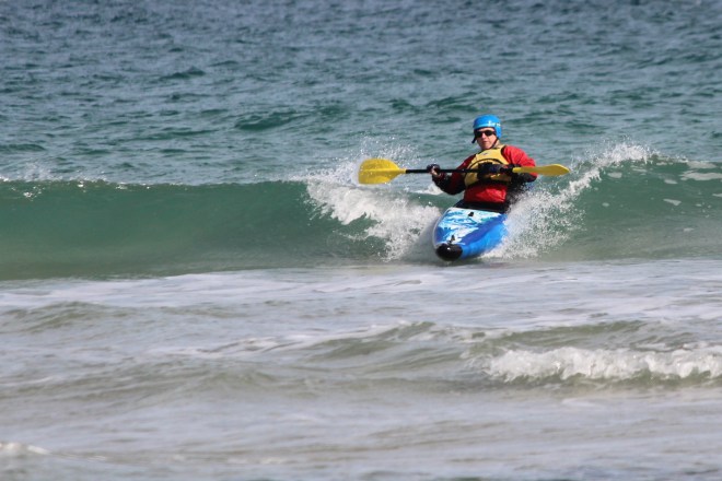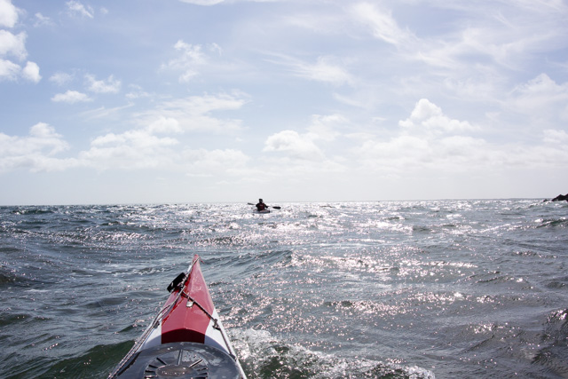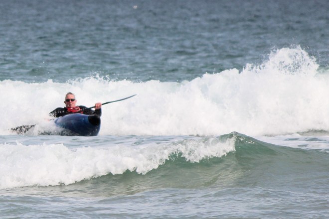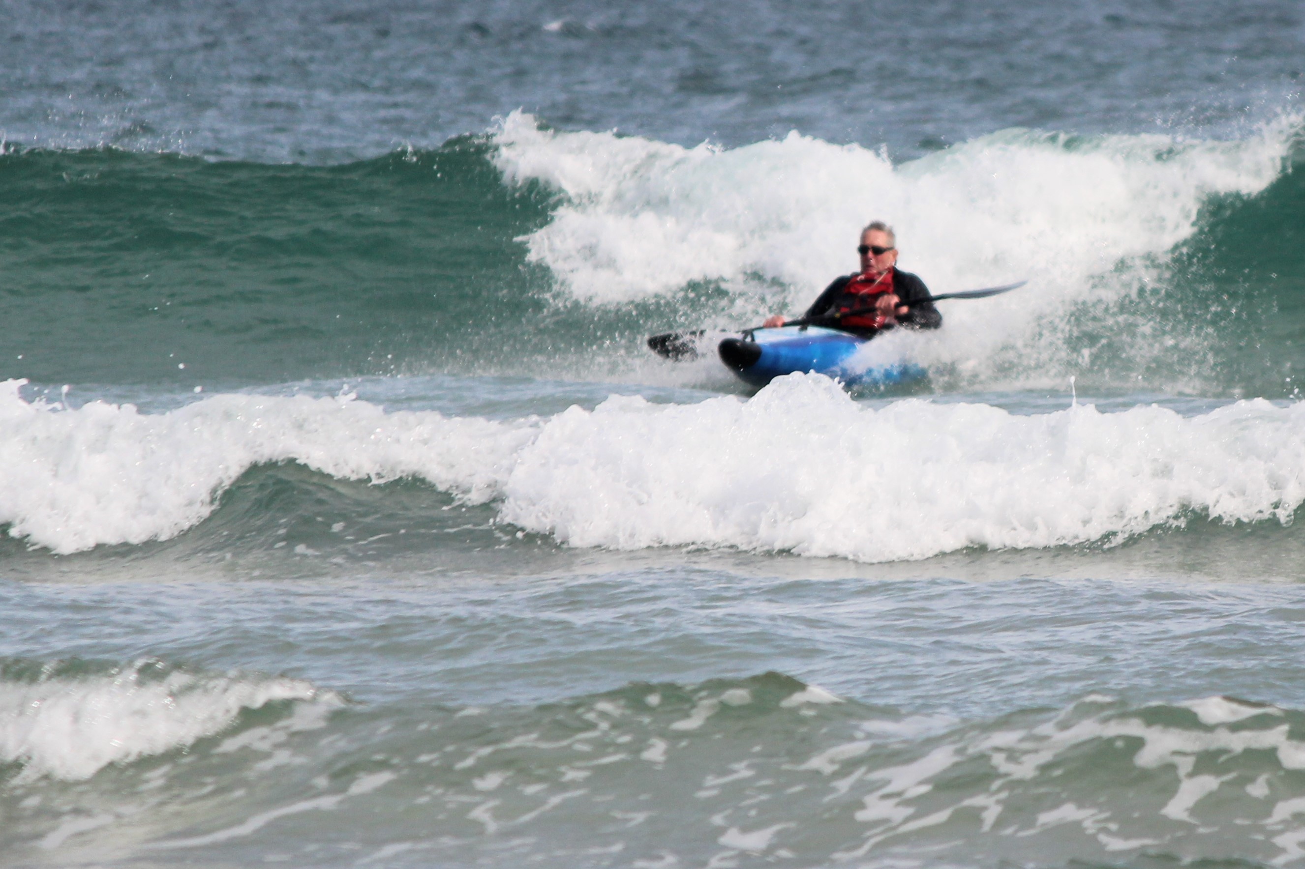 We launched in the lee of the marina and made our way southward along the coast. The wind had dropped a lot but was still enough to create a confused sea close to the rocks.