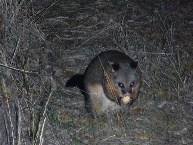 I did tell Rodney the Possums were very friendly but he was still a little amazed to find one sitting at the table with him. This guy grabbed some food and ran.