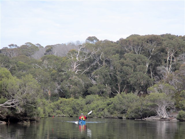 Looking at my GPS I thought “ Hey this was supposed to be an easy paddle riding the ebb tide, but we are only making 5km/hr in the strengthening wind. We decided to stay close inshore and use the headlands for protection from the breeze.