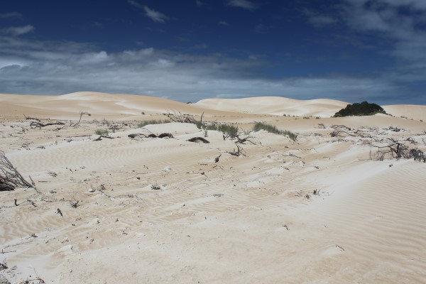 You can just spot the kayaks on the roof of the car as we made our way along the track. The track is marked by posts as the track is lost in the sand