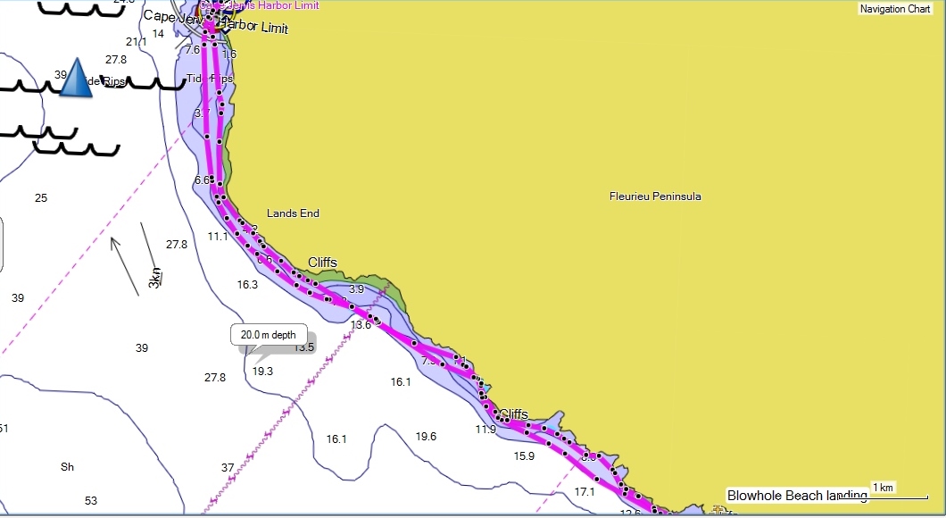 We reached Lands End and passed close in at Whites Beach where the underwater power cable goes to Kangaroo Island.