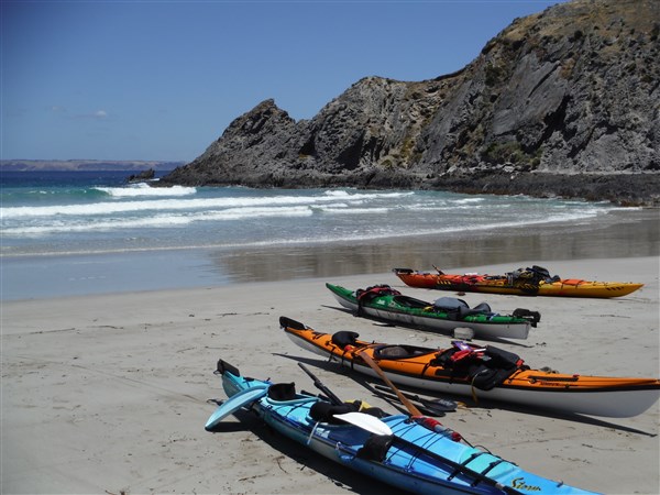 Sea kayak Day Paddle – Cape Jervis to Blowhole Beach. Actually there isn’t really a blowhole there, not like the type we normally think of where towering waves crash onto a rocky coastline sending plumes of spray skywards. This is Blowhole Creek in the Deep Creek National Park and one of the picturesque beaches along this very rugged coastline. I have been visiting this beach for the last 40 years and the only thing that has changes is that you can now access it via a 4WD track from within the National Park. In the old days it was a rocky walk down a rough track or straight down the fence line on Cobblers Hill.
