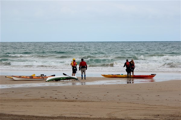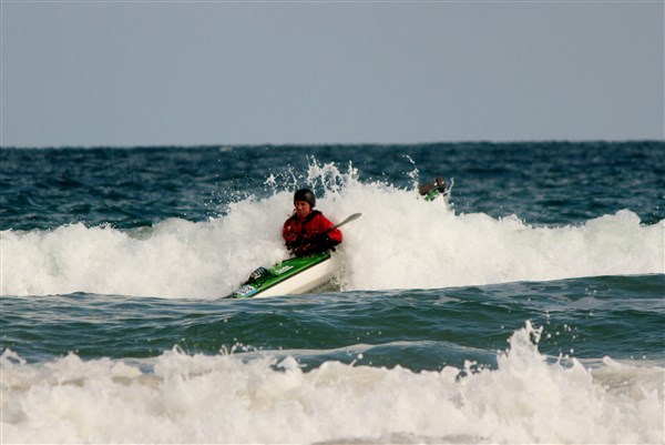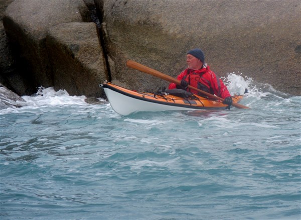 Not ideal conditions for this area today and even under ideal conditions you should have good “sea kayak skills” to paddle this area. However, two of us were standing on the beach with not much else to do except get cold and wet so off we went.