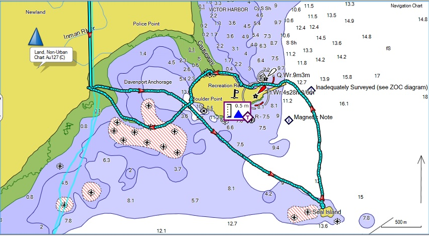 The plan was to paddle from Kent Reserve towards Granite Island, skirting an area of reefy breaks and bommies, then head out to Seal Island, returning via the eastern side of Granite Island.