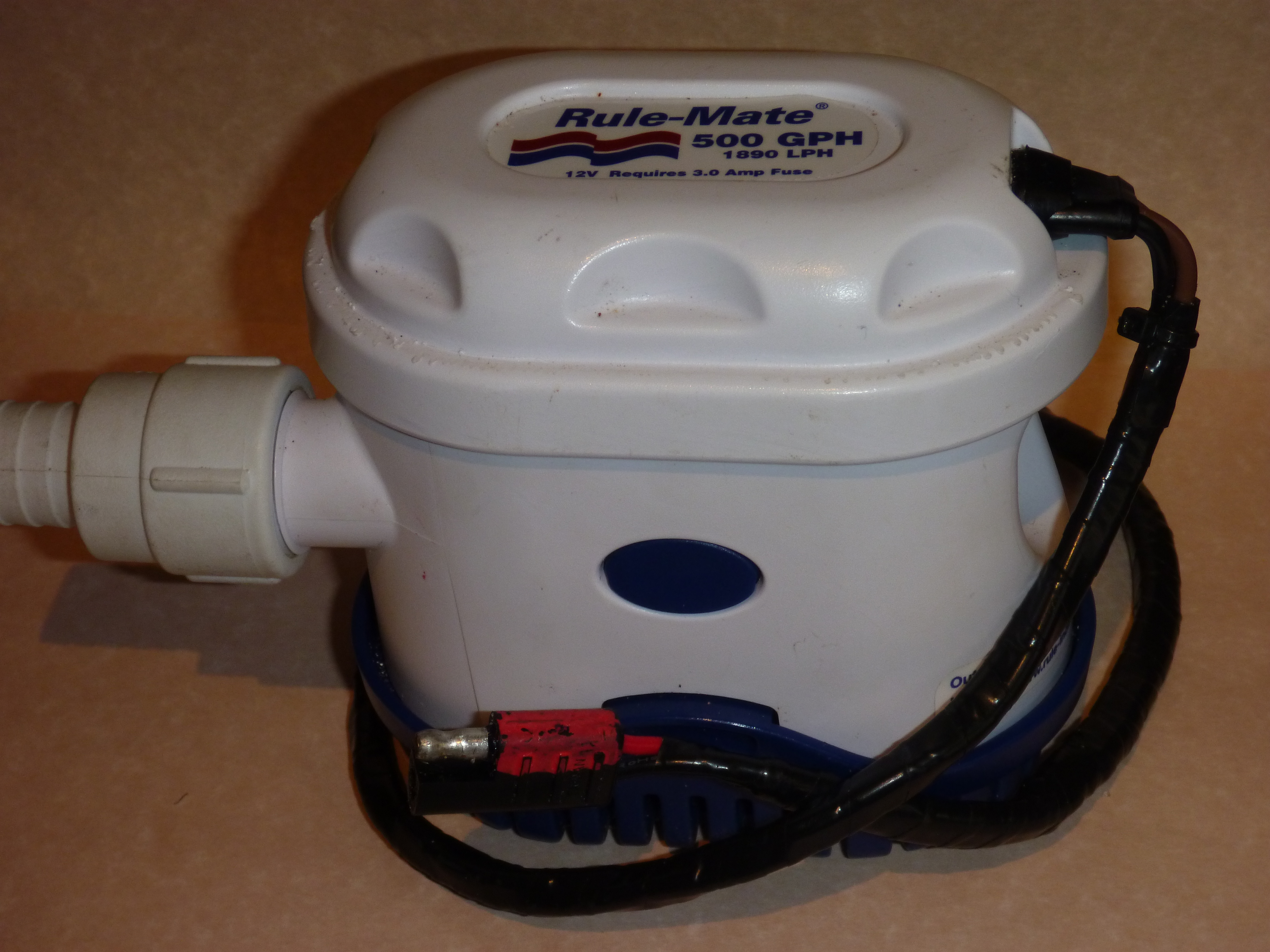 I am using the 500 gph Rule automatic pump with a 12 volt 3.2 amp battery in a waterproof case. The battery is much larger than I normally install, however , this will also be used to charge my camera battery on expeditions.