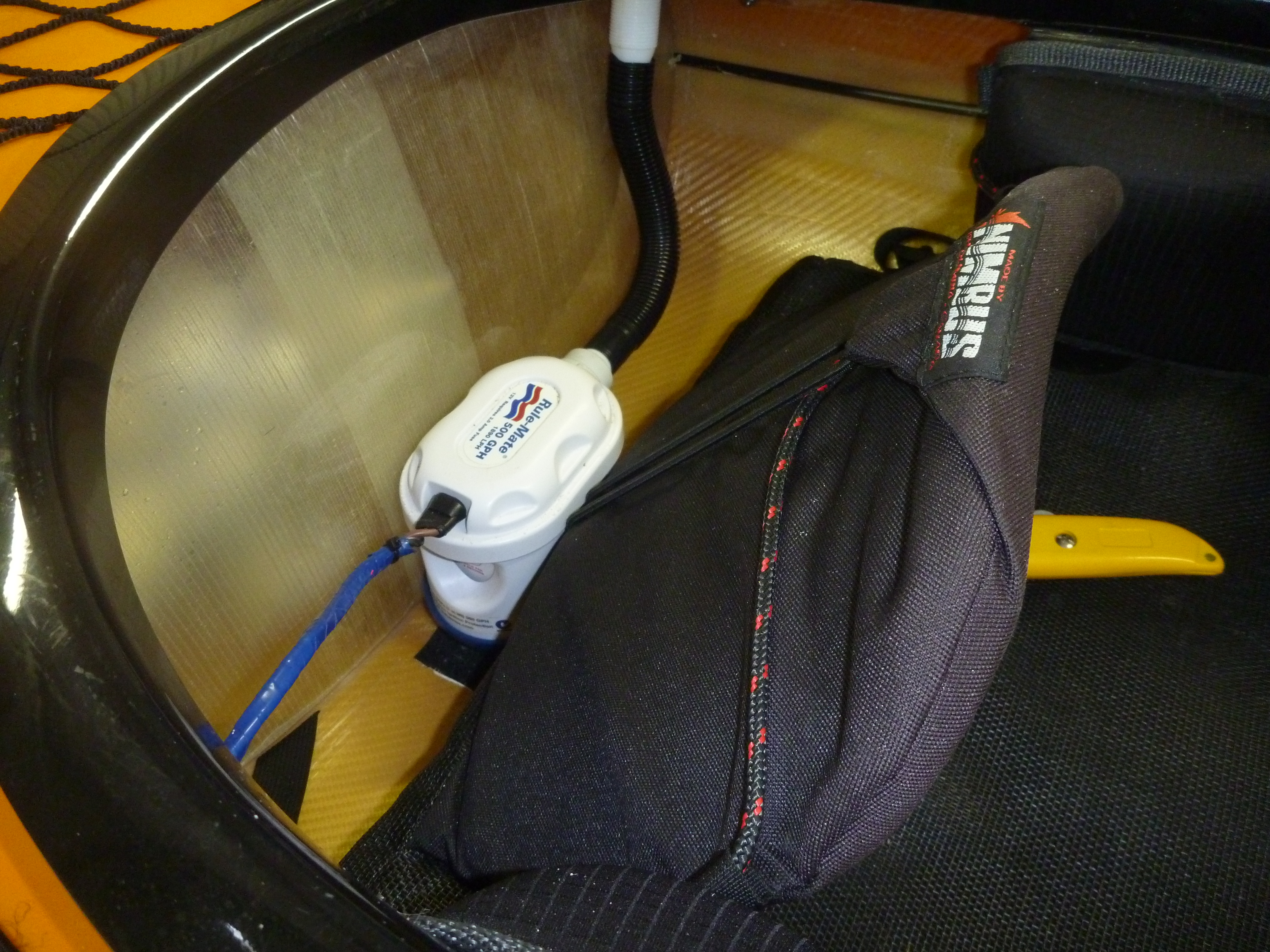 I have had all sorts of electric pumps installed in kayaks over the last 20 years or so, with many different combinations requiring the need to keep the battery dry. I have had the battery installed in the rear hatch, day hatch and in waterproof boxes etc.
