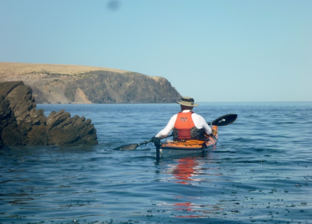 Paddling along this area is always eventful, especially when you get in close to the cliffs and ride the surging waves as Michael soon found out.