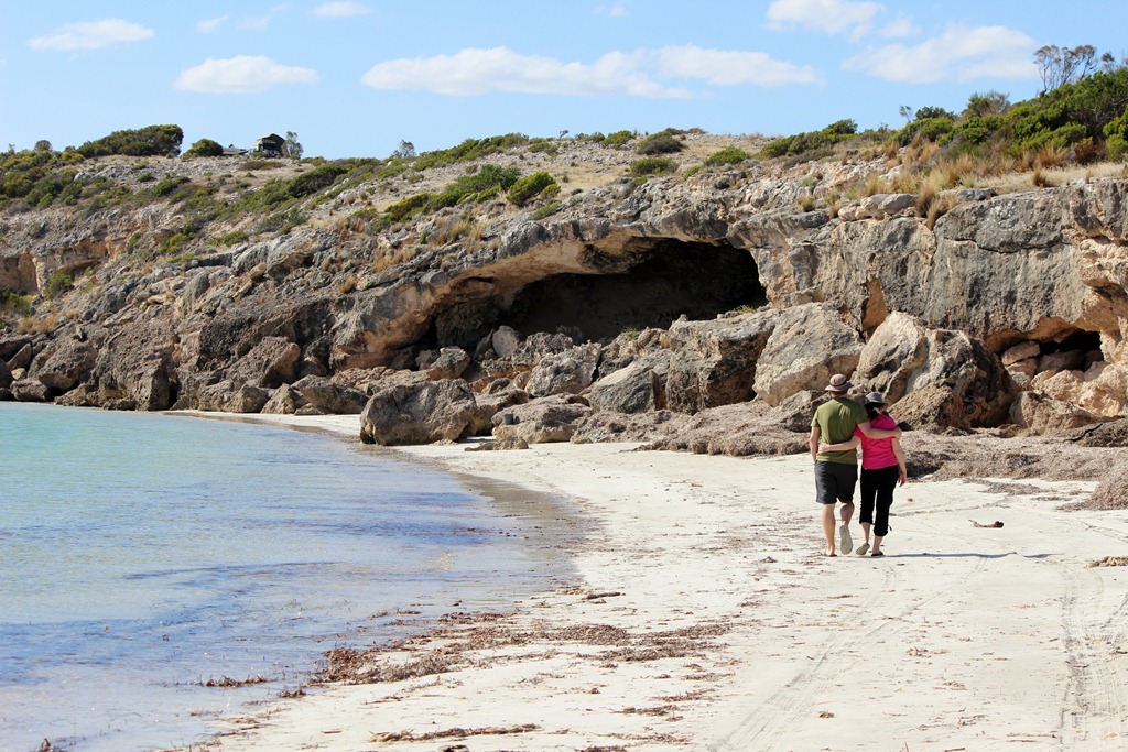 Mining of Lime Sand had begun on the island in 1910 and lasted for several years until easier to access deposits were located. There are still remnants of the small community that was involved in mining and agriculture. The island was once stocked with sheep and large water tanks were constructed, living quarters, shearing sheds and other facilities were built. Several families stayed on the island to manage the stock and the children attended a small school. A barge was used to ferry materials and stock to and from the island and later a ketch, ‘the Narungga’, would move between the island and Dolly’s wharf.