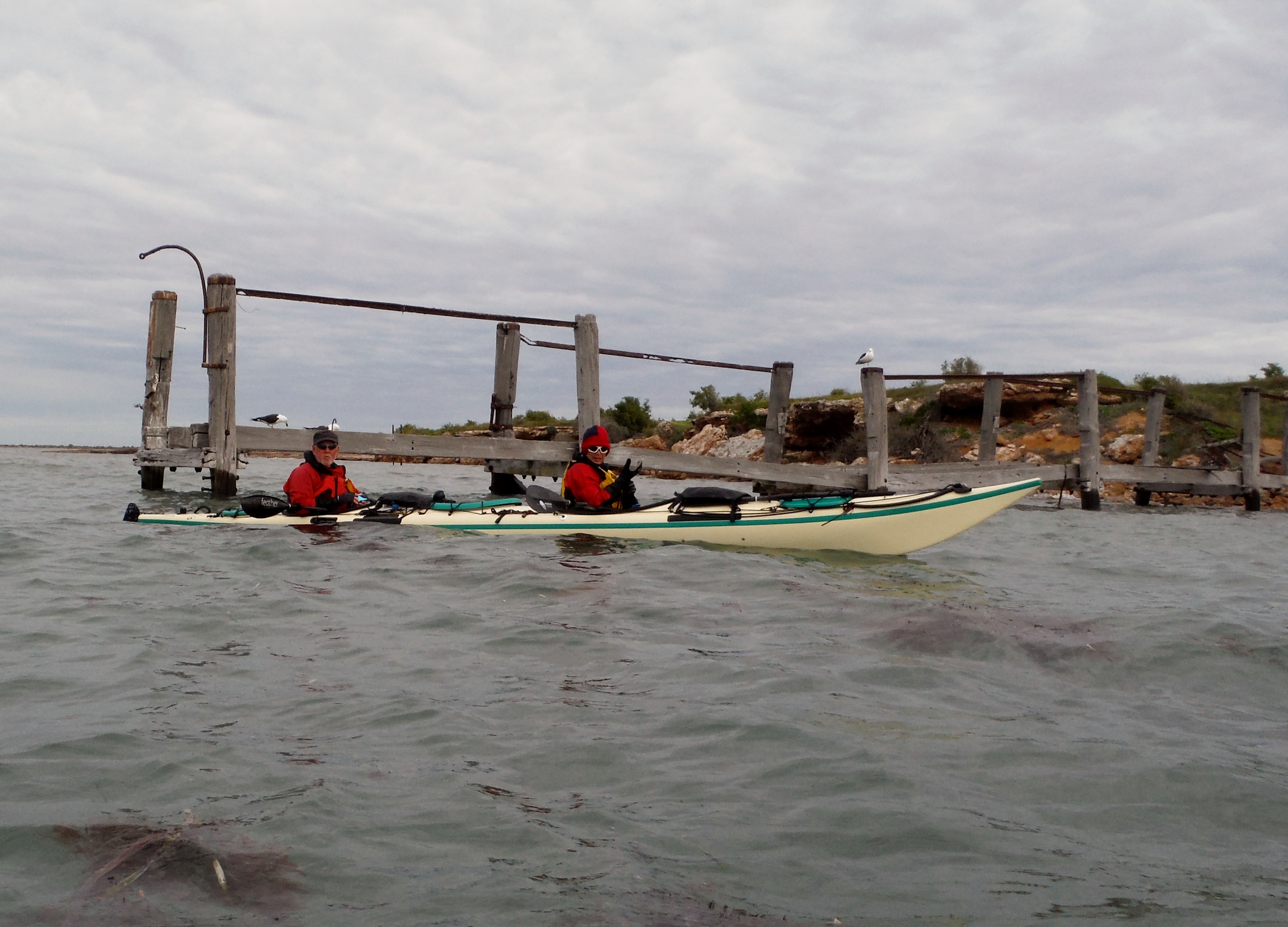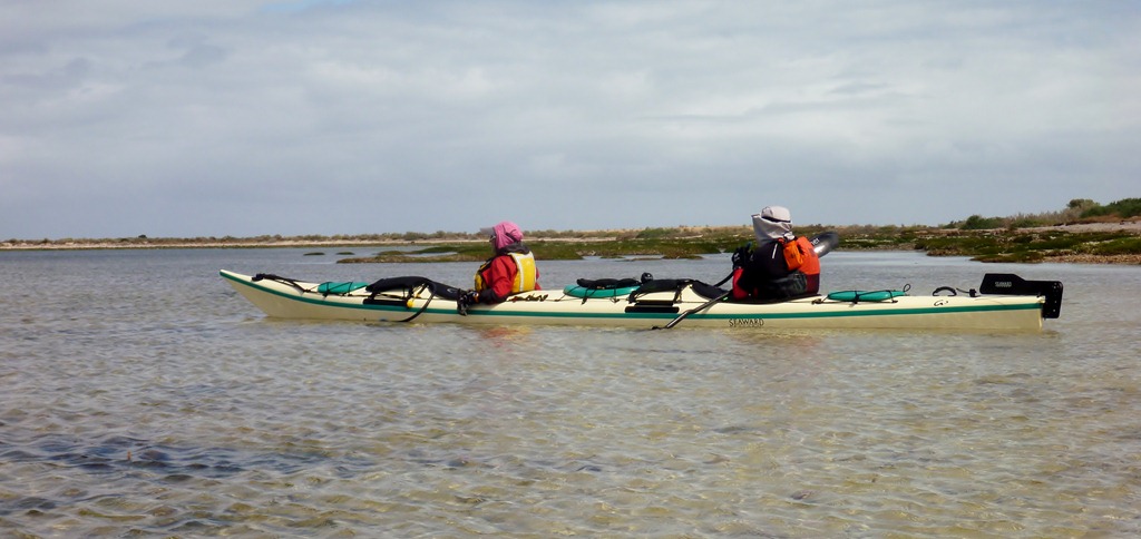 I’ve paddled past the wreck site a number of times in fair weather and seen the outline of the anchor poking from the rocks at low tide but this time we looked at the wreck from a different angle. We had paddled offshore 13km from Pt Victoria to the north western side of Wardang group of islands with a fresh headwind and short chop. This route is quite shallow and reefy in places and always makes for interesting wave action when the wind is up. We camped the night waiting for a better weather window, but it seemed to disappear, being replaced with a stiff headwind and SW swell.
