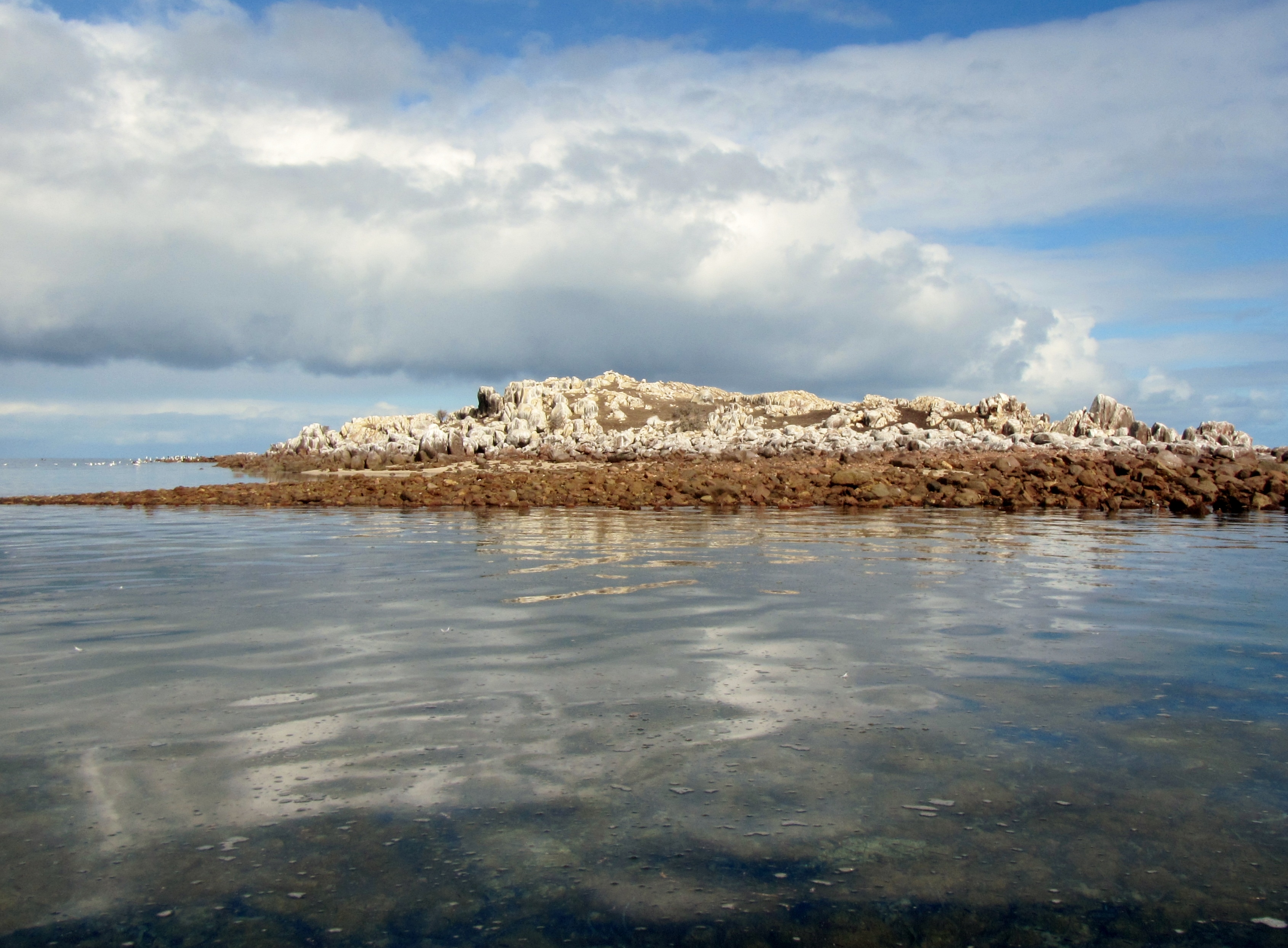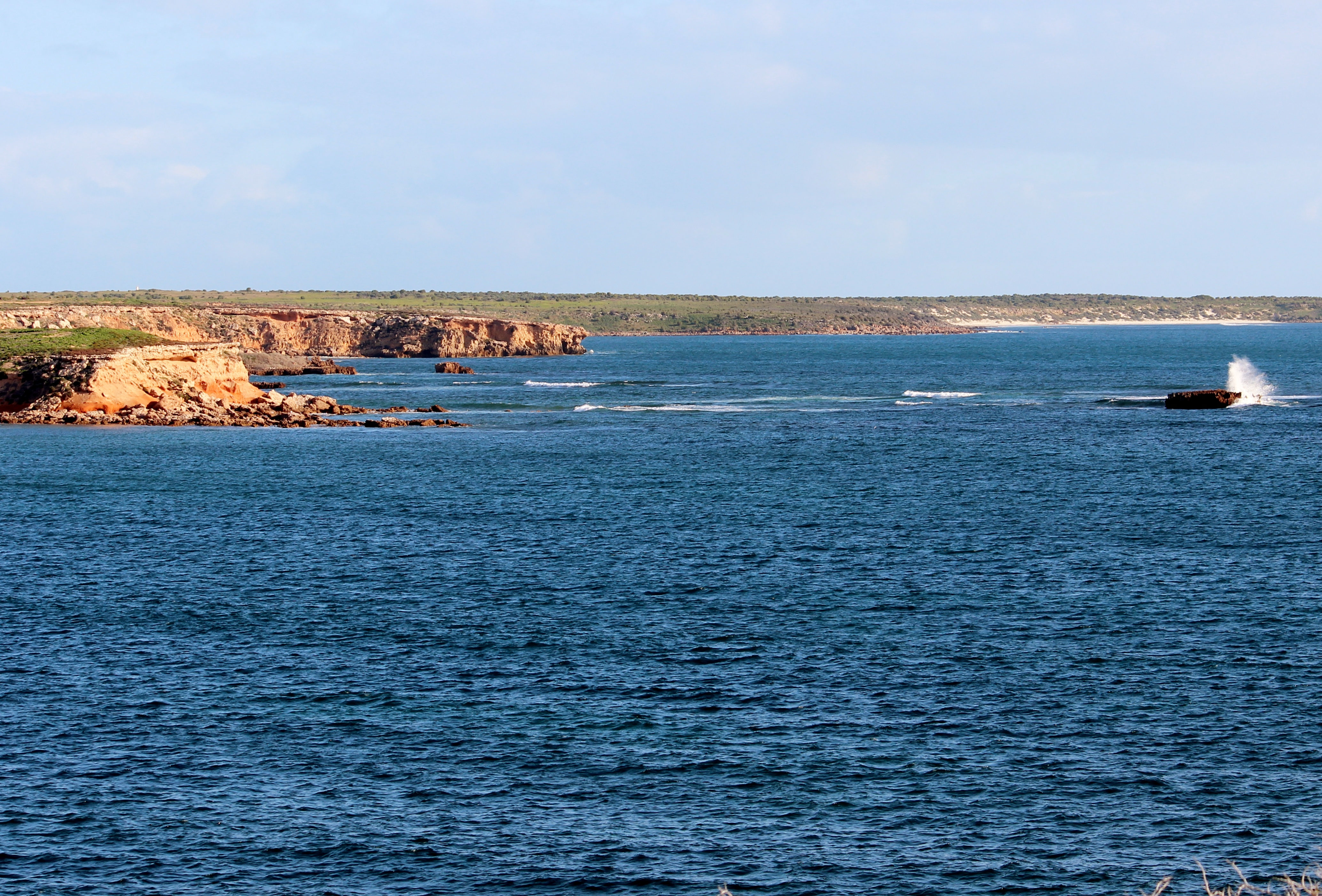 Next day we headed along the eastern coast of Wardang Island with thoughts of the Narungga people who had been travelling to Wardang Island long before the arrival of Europeans. The island could be accessed at low tide by wading out to Green Island and then swimming for kilometres across a deep channel. People would sit on the shore and sing songs and wave branches to distract the sharks from swimmers. I started singing quite loudly when a fin appeared of the stern of the kayak but luckily it was only a dolphin.